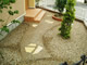 階段やアプローチは石貼りと洗い出しで滑り難くしています。重要ポイントにはシマトネリコやレイランディー
