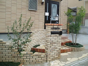 箕面でハウスメーカーの外構でレンガ塀で奥行き感を出した施工例。