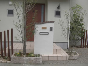 門柱の幅がとれない為縦型ポストを使いスペースを確保。