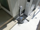 ウリンの柱を使い格子状にし、室外機を隠し、そのバランスに合わせ玄関側の花台横にも施工。